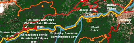 Από το Λιτόχωρο, ακολουθώντας το Ευρωπαϊκό ορειβατικό μονοπάτι Ε4 μέσα στη χαράδρα του Ενιπέα και κάτω από τις ορθοπλαγιές της "Ζηλνιάς" και της "Γκόλνας", φτάνετε στην Παλιά Μονή του Αγίου Διονυσίου.