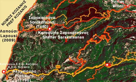 Ρητίνη, Κασταναριό, Λυκοπήγαδα, Σαρακατσάνα (4 ώρες) Λαπούσι, Φλάμπουρο (5 ώρες)